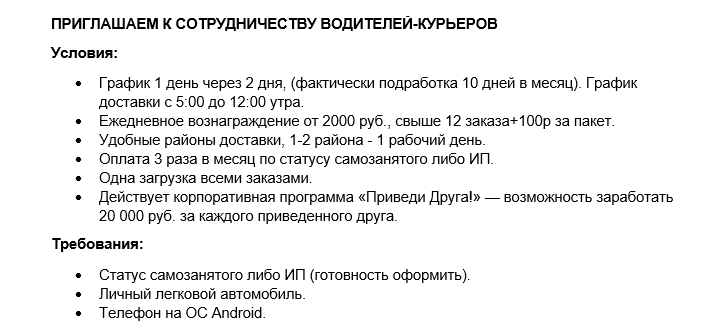 Прежде чем перейти к теоретическим моментам, рассмотрим пример вакансии, условия которой уже наводят на подозрения в нарушении трудового законодательства.